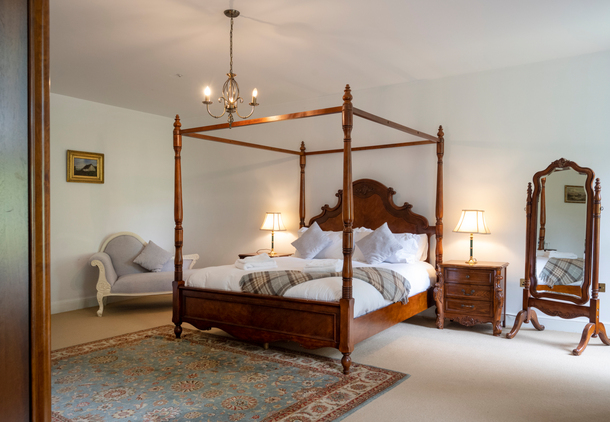 The principal rooms of Islay House — the largest, the most characterful, and the ones with the best views. Four-poster beds, freestanding baths, and the kind of space a historic country house was built to provide.